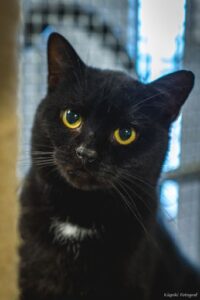 Popiołek to ok. 8-letni kocur, którego czarne futerko zdobi subtelna biała plamka na krawacie. Ten spokojny i stonowany elegancki dżentelmen ma w sobie coś wyjątkowego – wprowadza do życia harmonię i ciepło. Choć nie przepada za towarzystwem innych zwierząt, człowieka darzy sympatią i potrafi nawiązać z nim piękną więź. To idealny towarzysz dla kogoś, kto szuka mruczącego przyjaciela na długie wieczory.