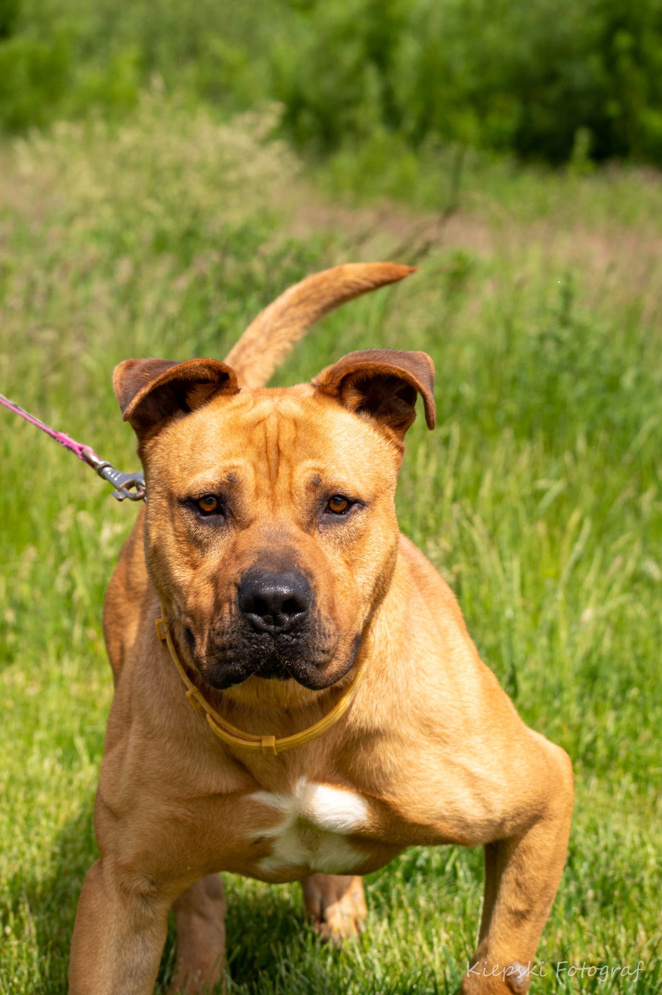 Urodzony w 2019 roku, w schronisku od 2021. To ogromny (ponad 40 kg) i bardzo silny, masywny pies w typie molosa – tylko dla doświadczonych osób znających rasę. To nie jest pies dla laika!