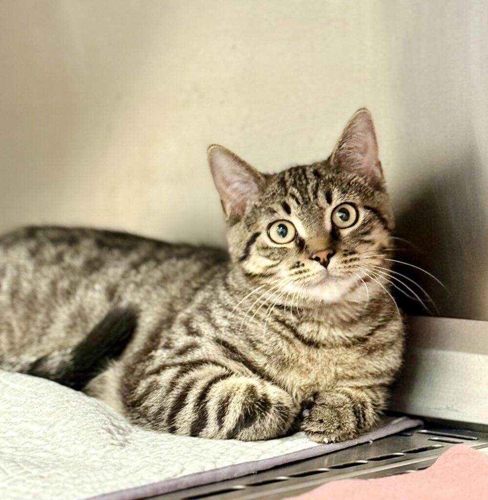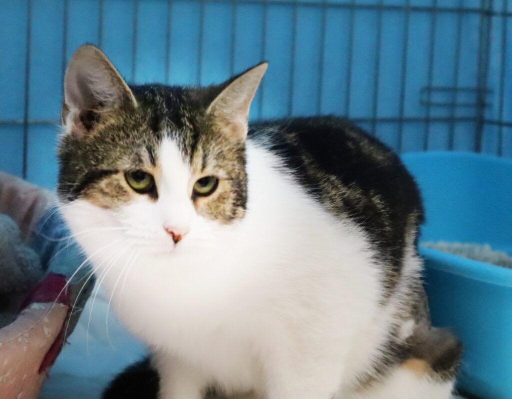 Beth to młoda kicia, która przy cierpliwym podejściu otwiera się i okazuje zainteresowanie człowiekiem, ale nadal jest nieco lękliwa (marzec 2026)