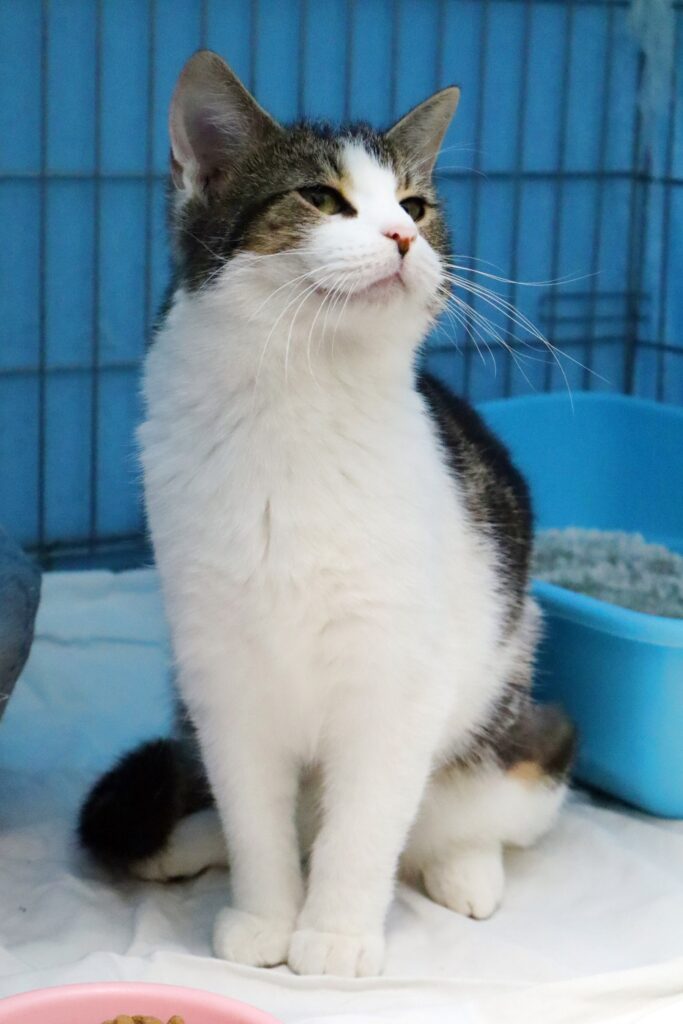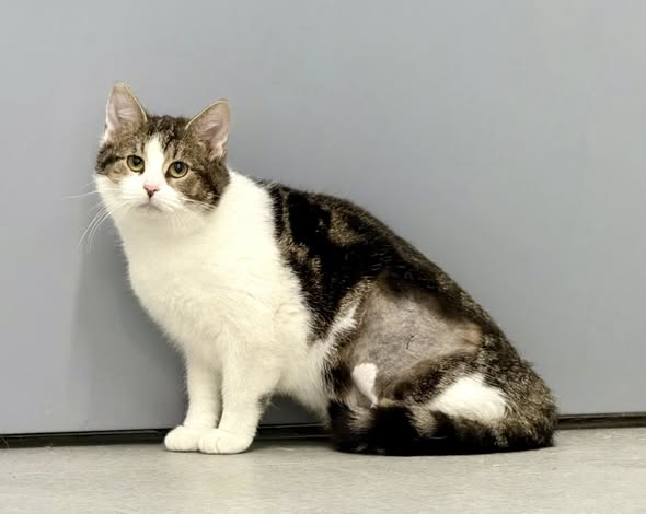Kotka trafiła do nas pod koniec sierpnia 2025 – ściągnięta z płotu Nowego Cmentarza. Całe szczęście obrażenia nie były bardzo poważne i obecnie kotka przedstawia się jako piękna i zadbana.