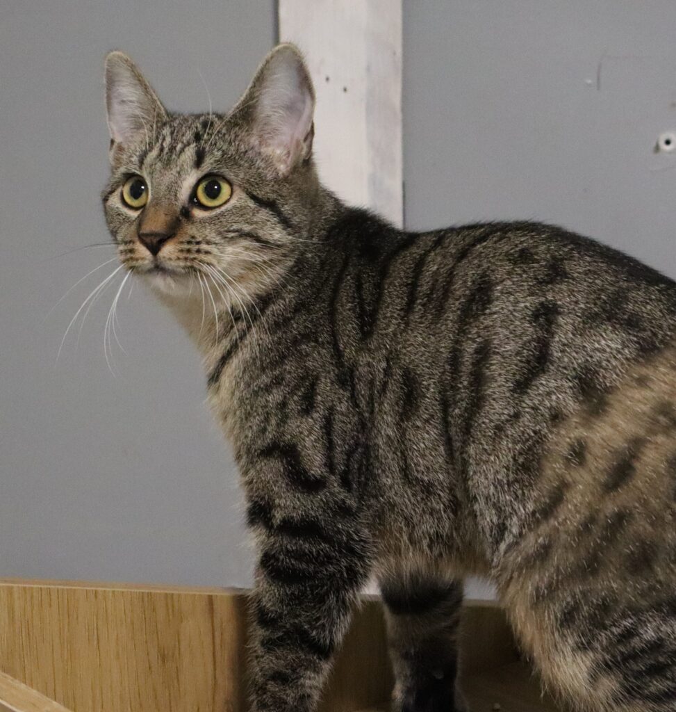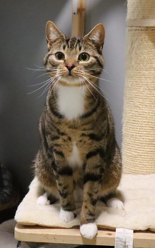 Ramosa urodzona w 2023 roku, przyjechała do nas w ramach interwencji. Jej czarne futerko z białymi znaczeniami nadaje jej wyjątkowy wygląd. Kotka jest dość nieufna i wycofana, ale przy odpowiednim podejściu można zdobyć jej zaufanie.