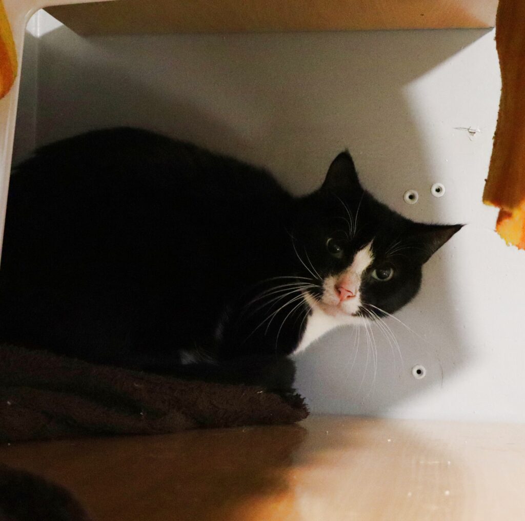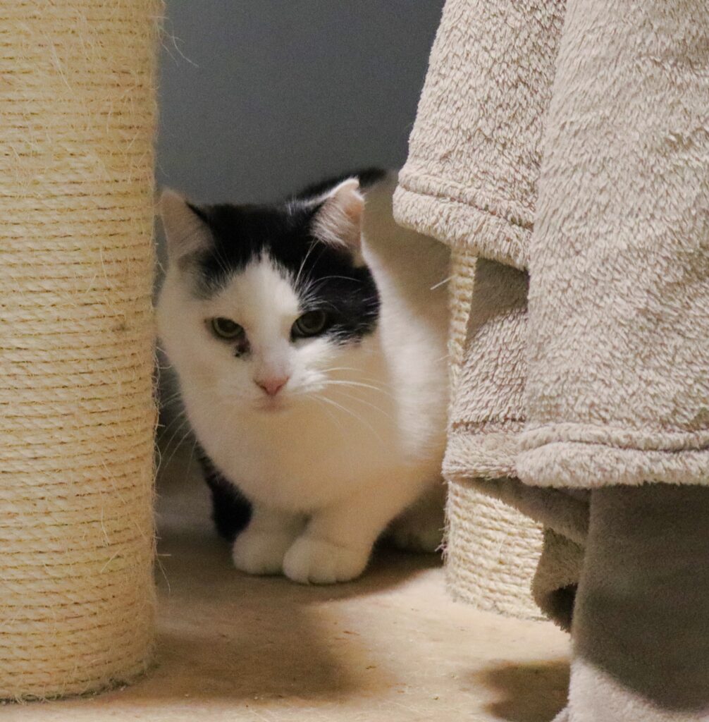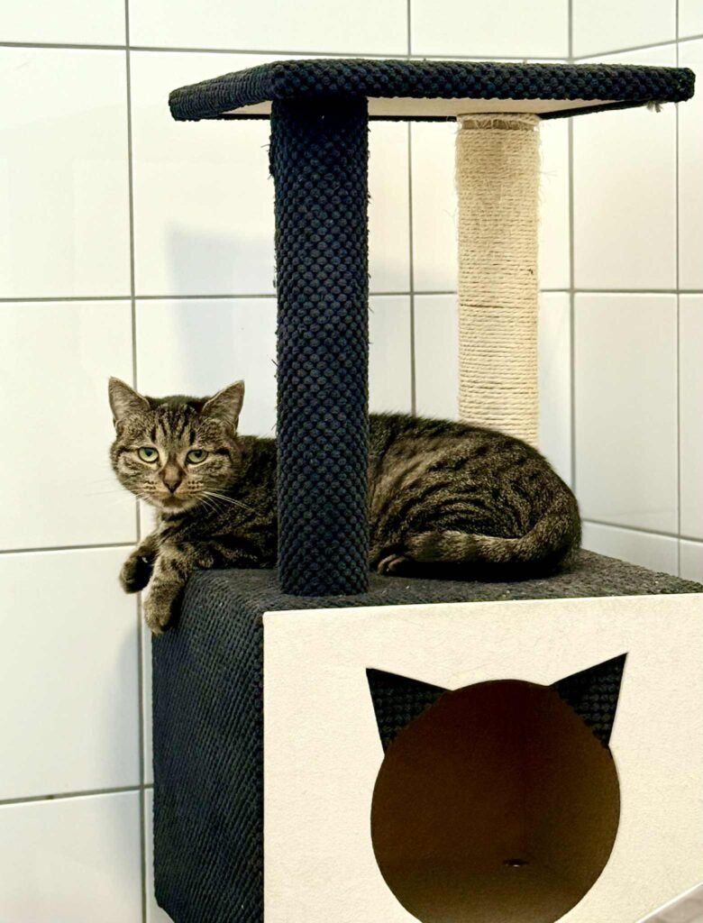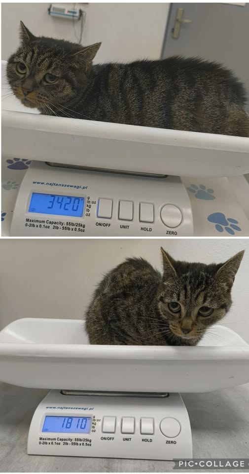 Triste to kotka o którą walczyliśmy od czerwca 2025. Ta smutna i wychudzona kicia, ważąca zaledwie 1,8 kg była pełna stresu i nieufności i bardzo staraliśmy się zapewnić jej komfort psychiczny i równowagę. Z czasem zaczęła częściej wychodzić ze swojego legowiska-dziupli. Również obroża feromonowa przyniosła efekty.