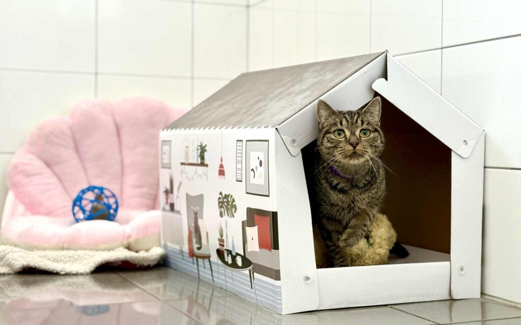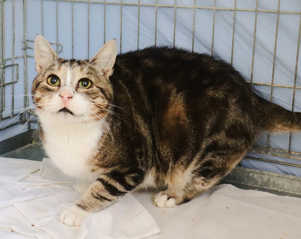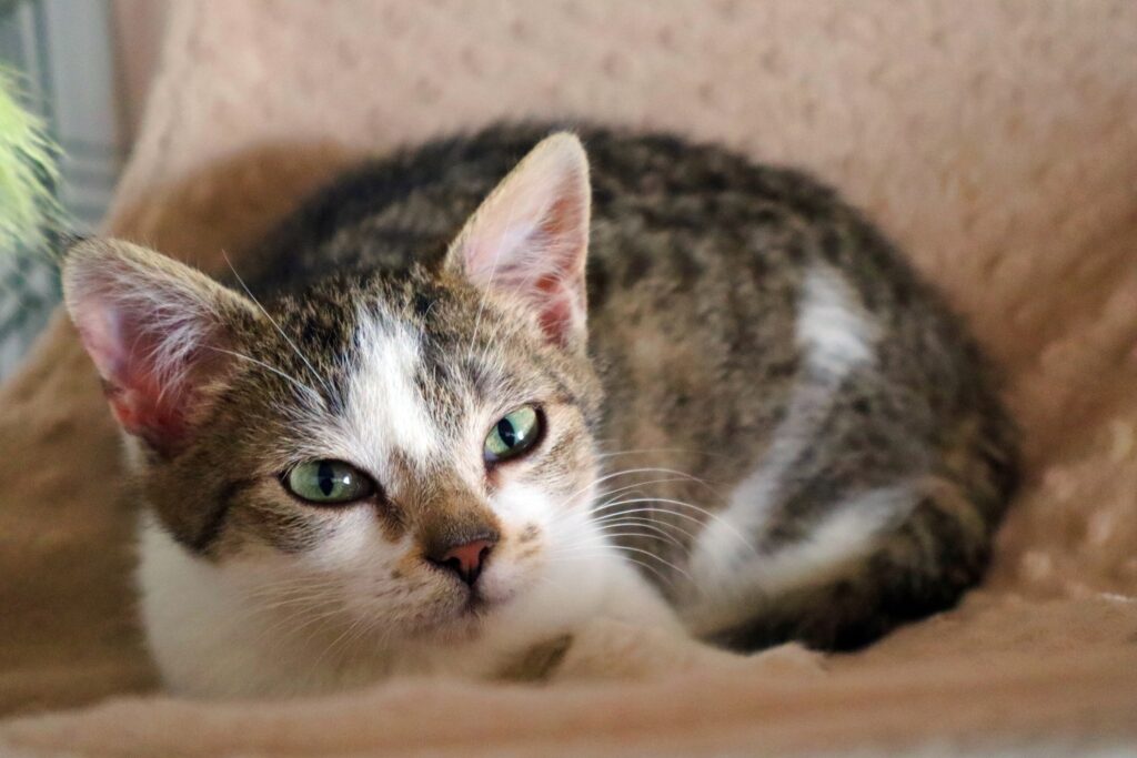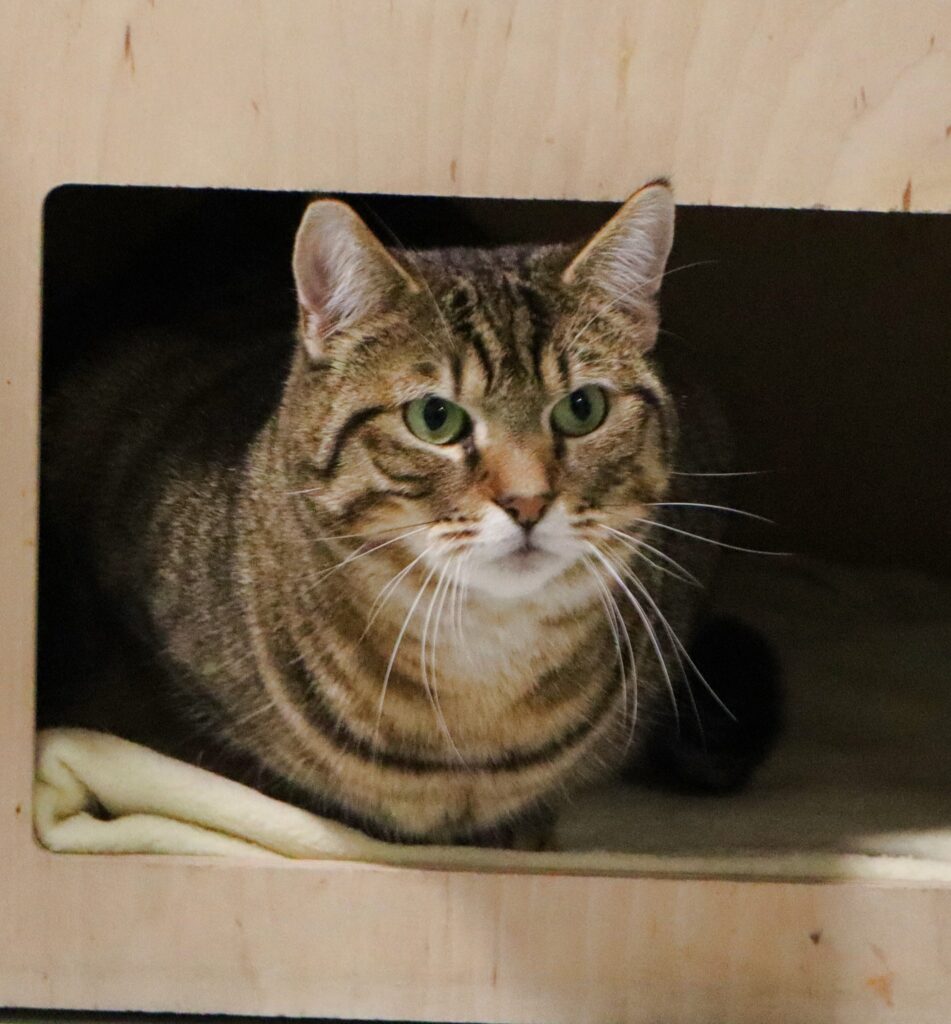Triste to kotka o którą walczyliśmy od czerwca 2025. Ta smutna i wychudzona kicia, ważąca zaledwie 1,8 kg była pełna stresu i nieufności i bardzo staraliśmy się zapewnić jej komfort psychiczny i równowagę. Z czasem zaczęła częściej wychodzić ze swojego legowiska-dziupli. Również obroża feromonowa przyniosła efekty.