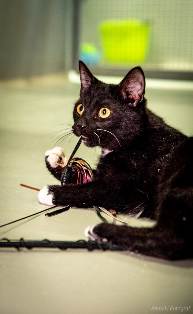 Koniecznie do domu z innymi zwierzętami, bo Dagna to istna torpeda, żywa iskierka, kotka nie cierpiąca nudy, która musi mieć kocie lub psie towarzystwo. Inne kocięta, jej przyjaciele, zostali adoptowani i Dagna jest teraz smutna bo nie ma się z kim bawić.
