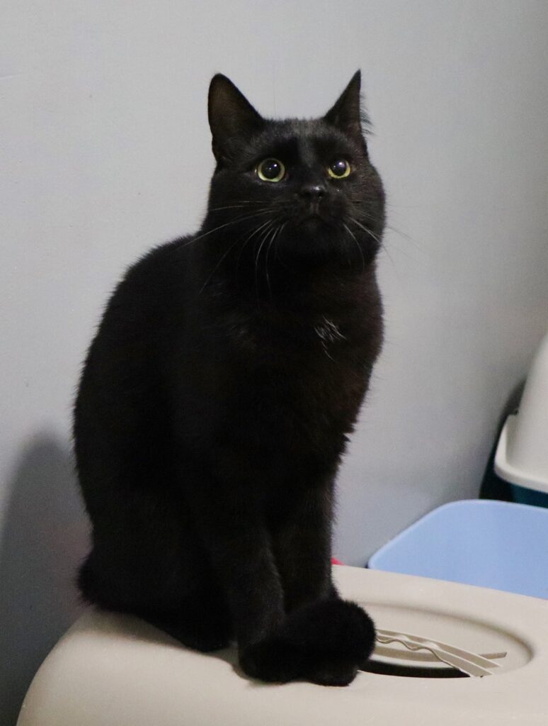 Popiołek to ok. 8-letni kocurek, którego czarne futerko zdobi subtelna biała plamka na krawacie. Ten spokojny i stonowany grubasek ma w sobie coś wyjątkowego – wprowadza do życia harmonię i ciepło. Choć nie przepada za towarzystwem innych zwierząt, człowieka darzy sympatią i potrafi nawiązać z nim piękną więź. To idealny towarzysz dla kogoś, kto szuka mruczącego przyjaciela na długie wieczory.