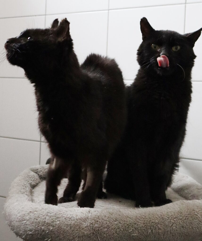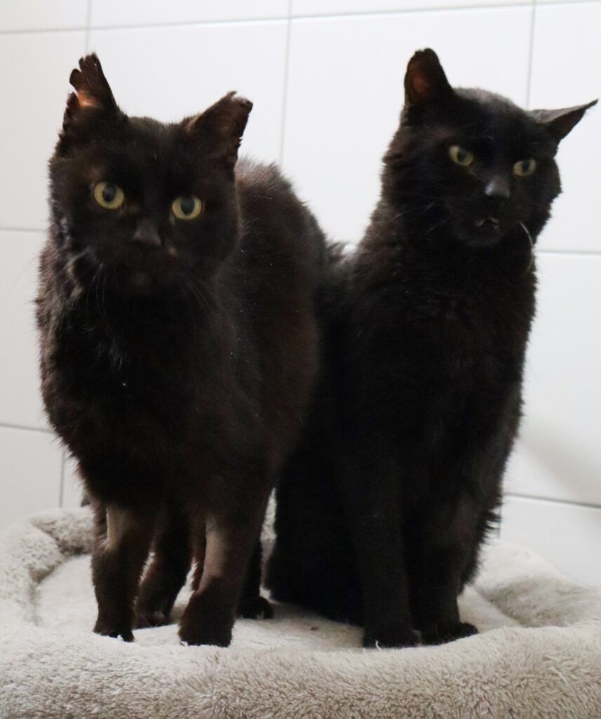 Matus i Motus to para około rocznych, smukłych, czarnych kotów, które są nierozłącznymi braćmi.