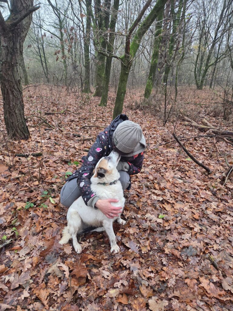Kiedy spotkaliśmy Elizkę na naszej drodze, to nie chodziła (od sierpnia 2025), ale nie udało nam się ustalić, co się dokładnie stało ani kiedy miał miejsce ewentualny uraz, który pozbawił władzy jej tylne łapki. Podjęliśmy żmudną i trudną walkę, by przywrócić Eli-zce sprawność. Choć w warunkach schroniskowych wcale nie było to łatwe, to krok po kroku podejmowaliśmy kolejne działania: kosztowną diagnostykę (najpierw w Słupsku, potem w Gdańsku) oraz dwie operacje kręgosłupa (również w Gdańsku).