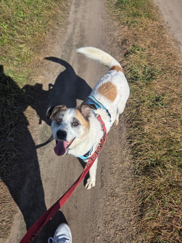 Wyleczyliśmy ją ze zmian skórnych i teraz śmiało może śmigać na spacerki zapoznawcze z potencjalnymi nowymi opiekunami.