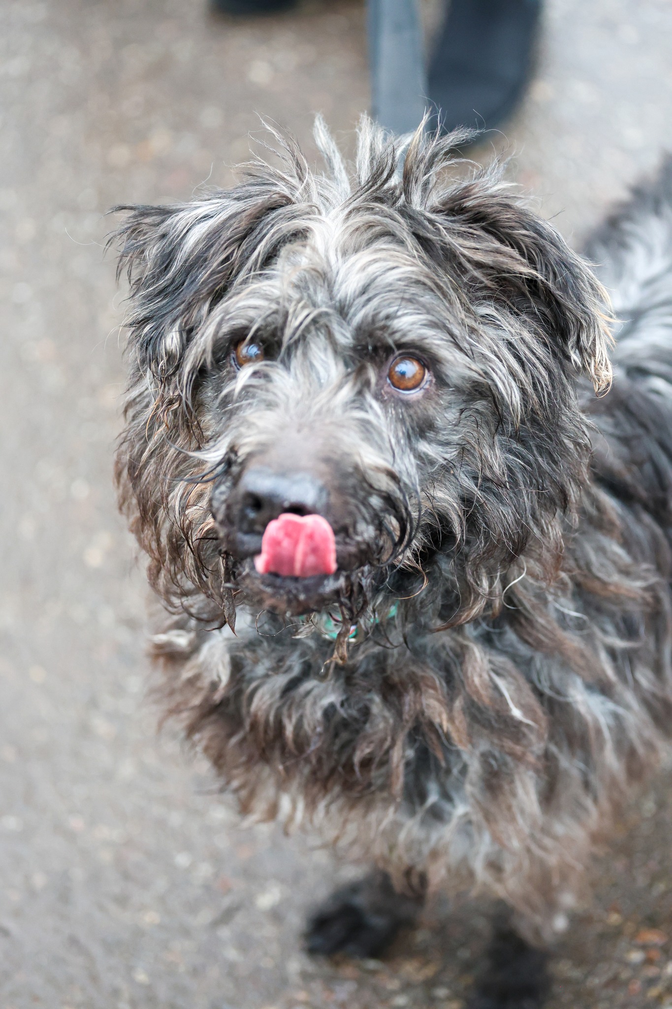 Szarik trafił do schroniska jesienią 2024, jako dwunastoletni psi senior. Opiekunowie ZRZEKLI się go, bo nie chcieli już takiego starego psa, a podobno i podgryzał dzieci.