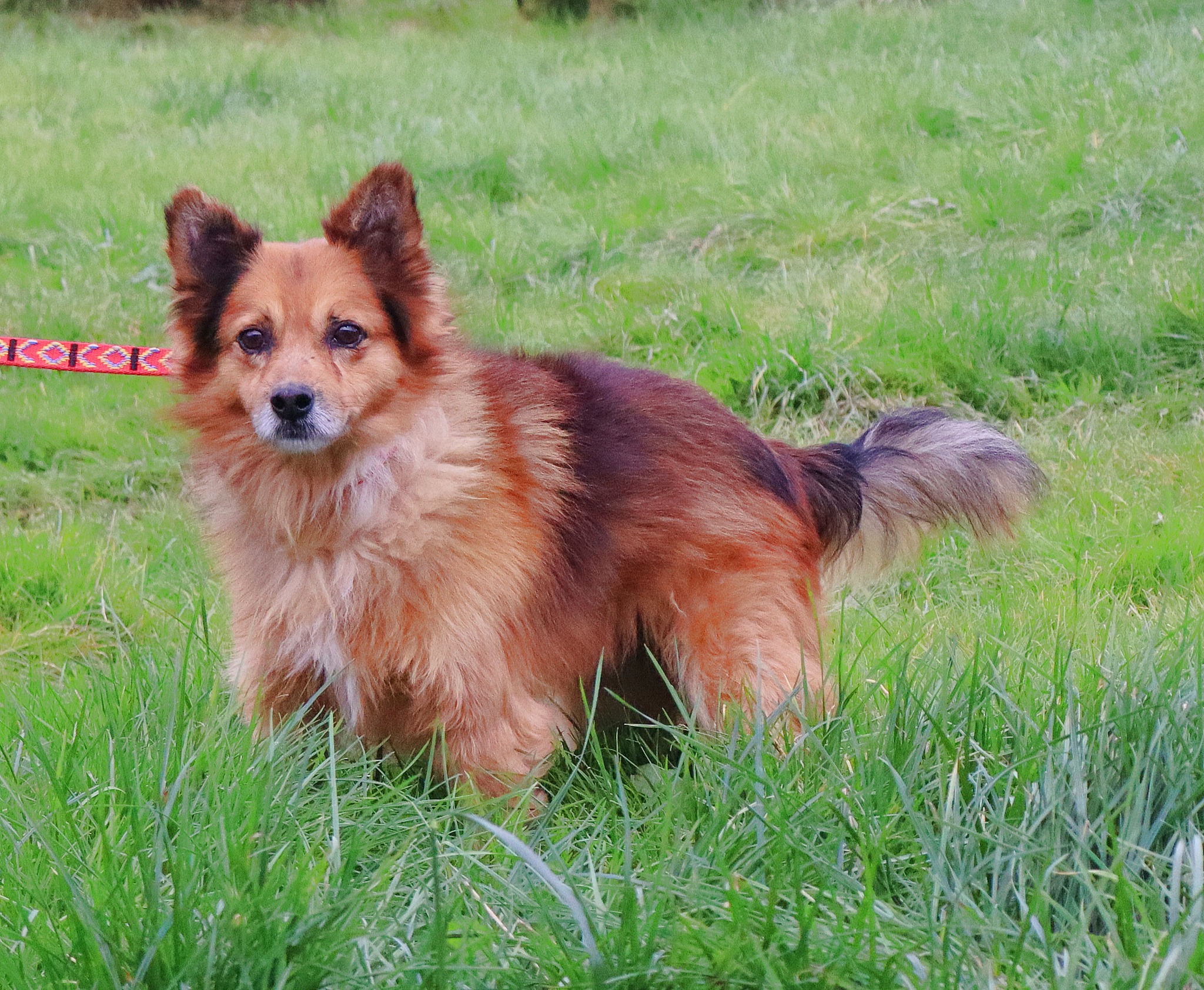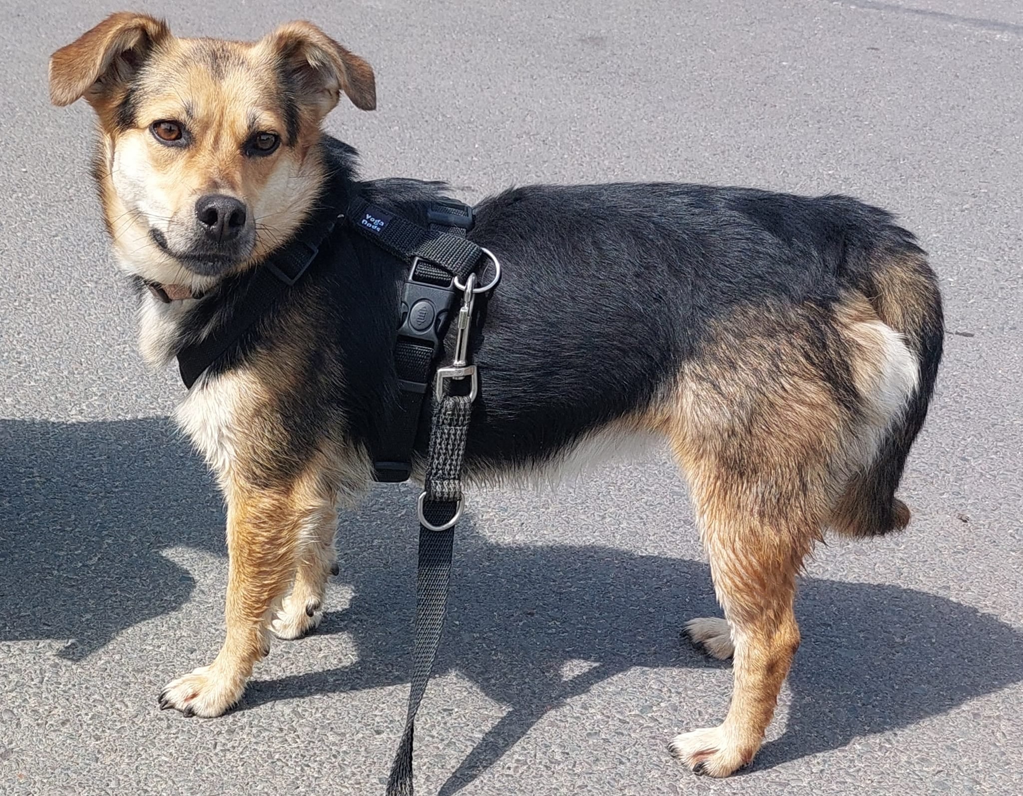 Tinker to przepiękny psiak średniej wielkości i drobnej budowy, urodzony ok. 2023, w schronisku przebywa od końca lipca 2025.