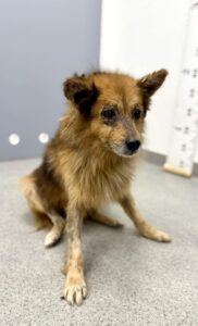 W schronisku przebywa od końca sierpnia 2025. Został przywieziony z terenu miejscowości Gać, a jak wtedy wyglądał – pokazuje ostatnie zdjęcie.