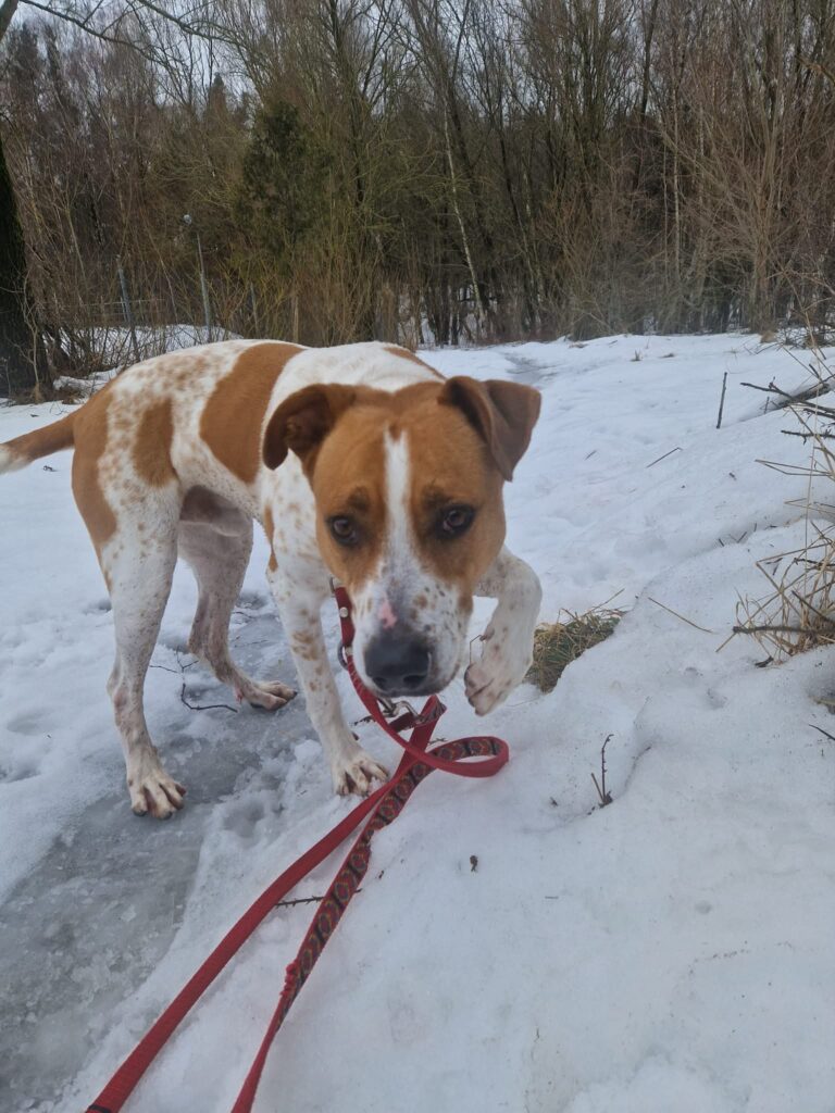 W schronisku od czerwca 2024, od razu dał się poznać jako świetny przyjazny pies, który ładnie chodzi na smyczy. Urodzony 2017.