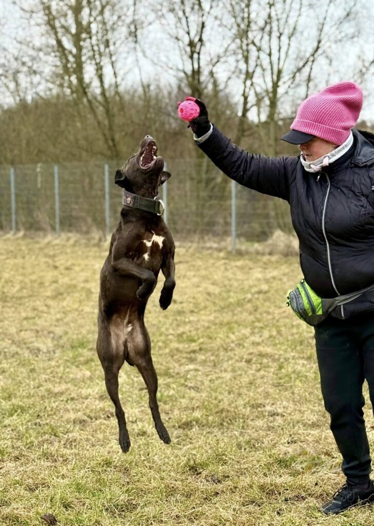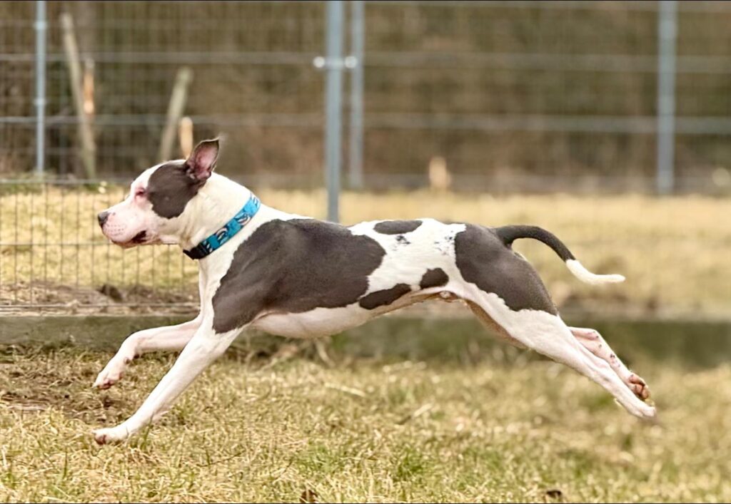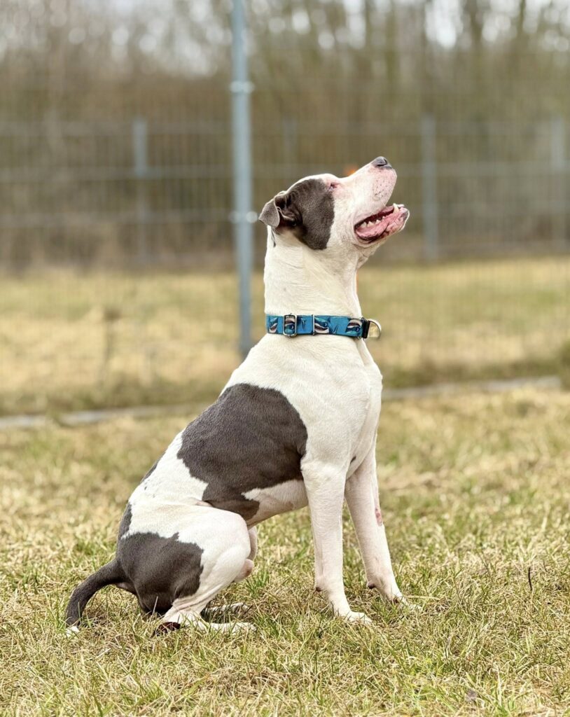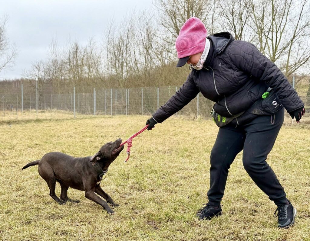Wina urodzona ok. 2023 waży ok. 13 kg i obecnie już się oswoiła z warunkami schroniska. Na spacerach ciągnie jak parowóz i zdecydowanie potrzebuje nauki chodzenia na smyczy, bo wręcz ją rozsadza nierozładowana energia. Gdyby miała warunki do biegania i swobodnych szaleństw, to na pewno byłoby inaczej.