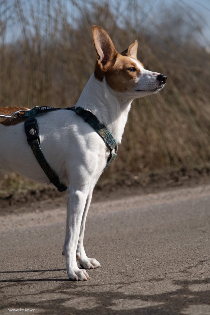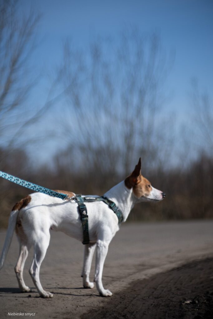 Lubi spacery, grzecznie daje się podpiąć i ładnie idzie na smyczy. Nie ciągnie, nie zaczepia innych psów, nie reaguje też na przejeżdżające samochody.