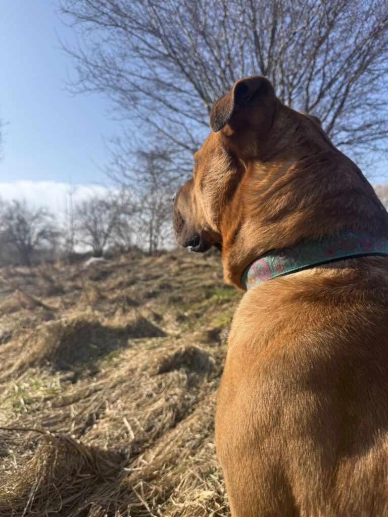 Wolontariuszka Martyna mówi: Denver to pies pełen energii, który potrzebuje przy sobie człowieka – takiego który będzie zarazem bezpieczną ostoją i oparciem, ale i pokaże granice. Na wybiegu i spacerach jest początkowo tak podekscytowany, że emocje wręcz go rozsadzają! Natomiast po ich opadnięciu daje się on poznać jako pies bardzo zdyscyplinowany i zrównoważony. Szłam z nim przez las, prowadząc go na zupełnie luźnej smyczy, a on był skupiony na mnie, na wydawanych komendach, które pięknie wykonywał i z zadowoleniem przyjmował w nagrodę smaczki. “Łapa” (jedna i druga), “chodź”, “stój”, “siad” czy “nie”- to znane mu i wykonywane polecenia. Ten żywiołowy psiak potrafi się też na spacerze wyciszyć i zrelaksować – usiąść, poleżeć. Szybko można zdobyć jego zaufanie, to jest bardzo mądry i zdyscyplinowany pies, nieoszlifowany diament. (marzec 2026)